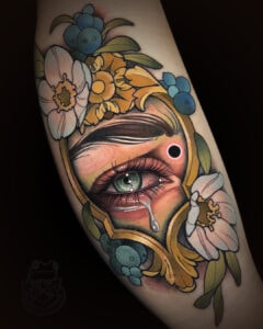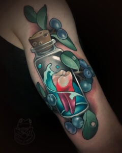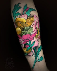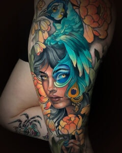 Hi! My name is Evin Pfaff. I’ve been tattooing for 14 years. My studio is located in Bedford, Pennsylvania. I specialize in color neotraditional and illustrative tattoos.
