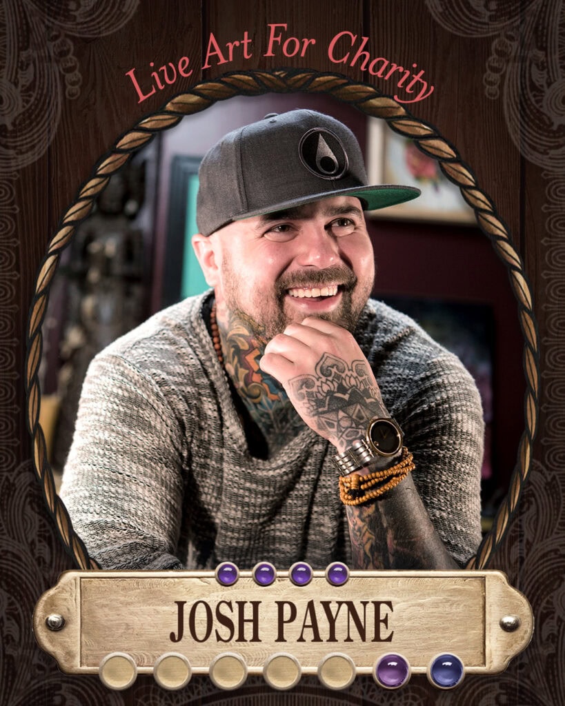 Josh is the Ink Master winner from Season 10. Widely known for his career as an award-winning tattoo artist, Payne has expanded his artistic vision beyond skin and into the realm of fine art, creating striking paintings that blur the line between contemporary realism and dreamlike abstraction. His work often features haunting portraiture, mythical creatures, and layered imagery.