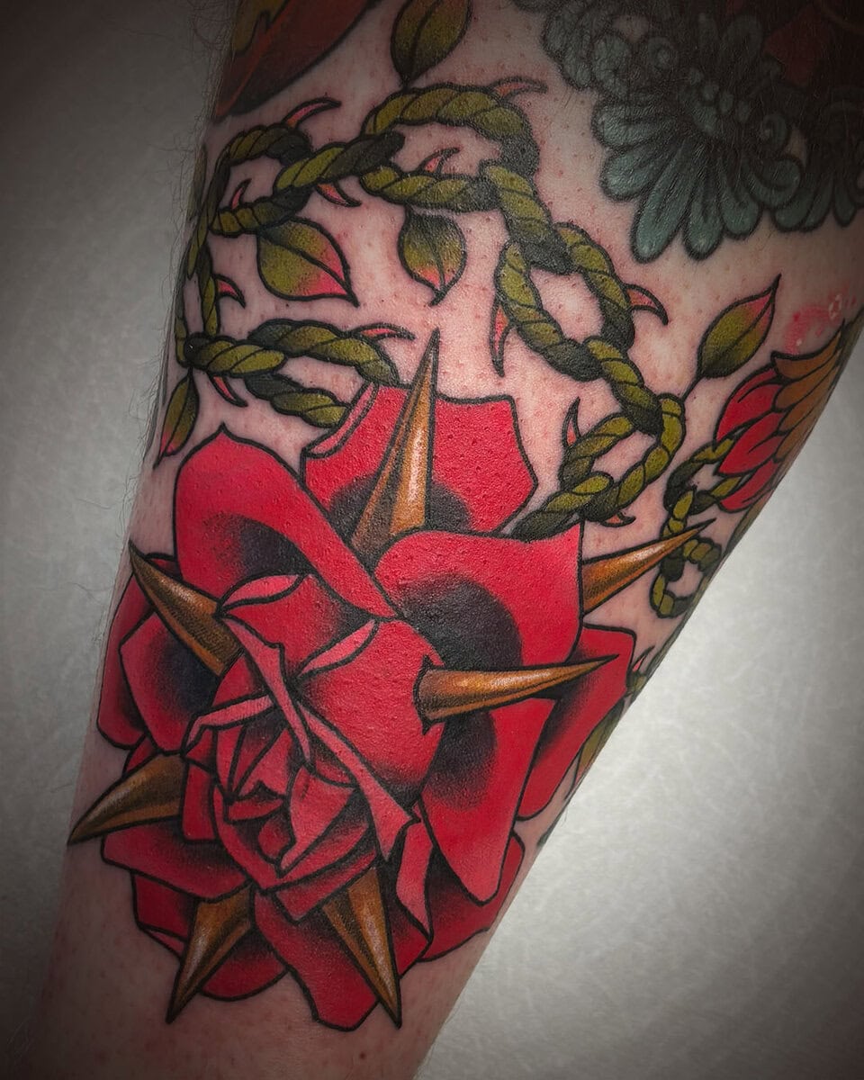 Monica Amneus is a Portland-based tattoo artist and illustrator specializing in colorful, illustrative tattoos with a love for pop culture, horror, magical animals, florals, and cover-ups. Originally from Oregon, she spent years in Baltimore honing her craft before co-owning I Heart Tattoo, a cozy co-op shop in NE Portland. When she’s not tattooing, she’s being an indoor kid, making oddly specific playlists, or gaming in a pile of blankets. She takes her art seriously, but herself, not so much.