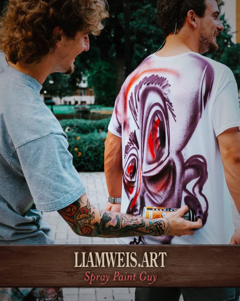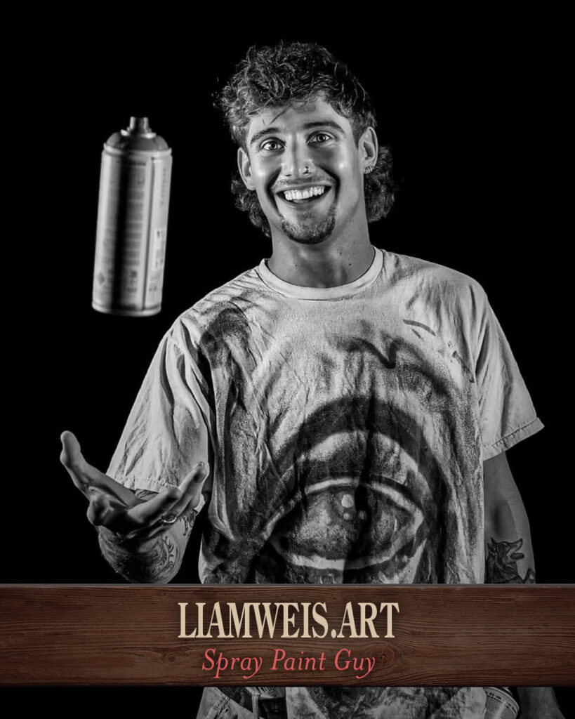 We are stoked to have local VCU art student Liam Weis spray painting live all weekend. Be sure to wear something for him to spray paint.