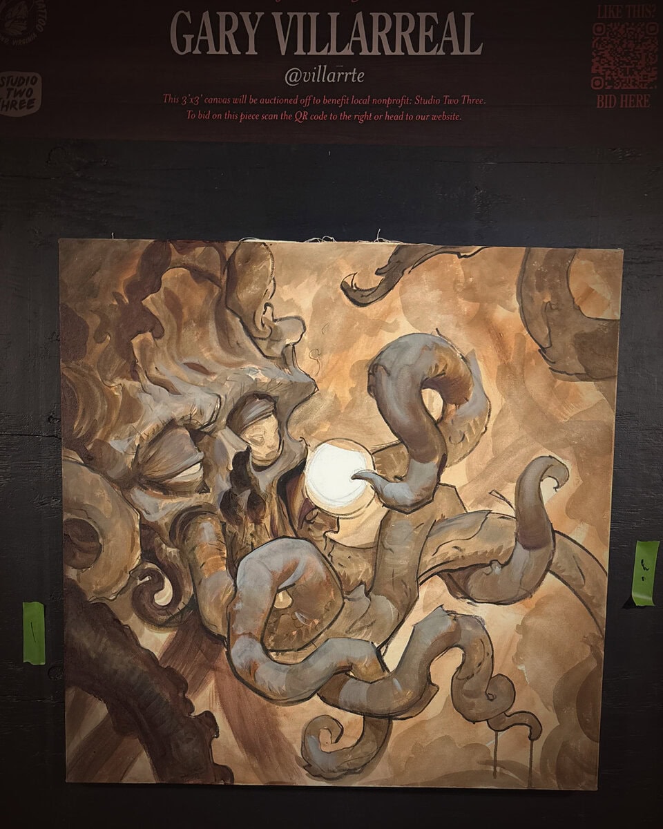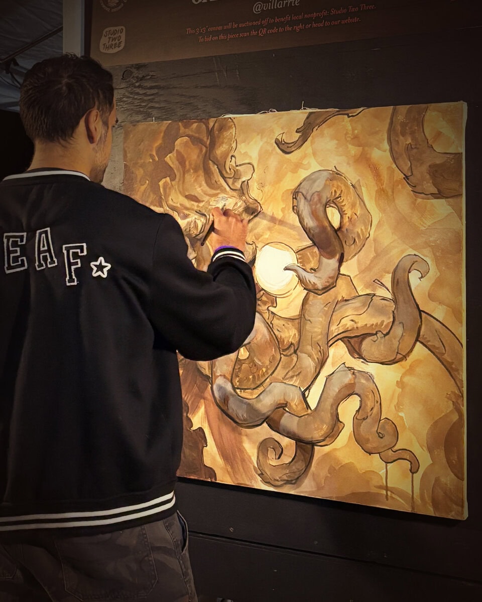 During the convention, Gary Villarreal has been working on this special 3′ x 3′ canvas. We are auctioning off this beautiful piece of art to the highest bidder. The proceeds will be donated to this year’s nonprofit partner: Studio Two Three. Studio Two Three is a non-profit dedicated to supplying local artists with a workspace, supplies, tools, and education.