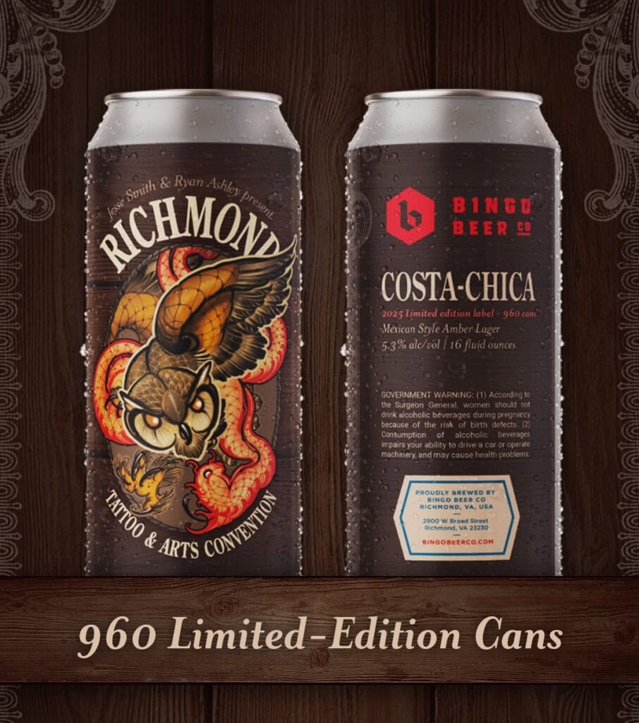 You'll be the FIRST to secure a limited-edition, collectable Richmond Tattoo & Arts Convention Beer created in partnership with the award-winning Richmond Brewery, Bingo Beer.